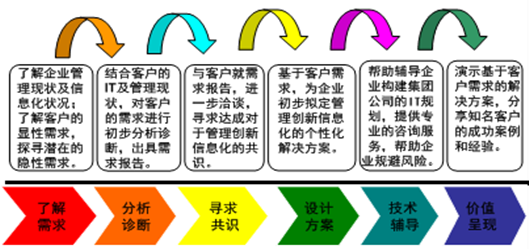 基于對客戶業(yè)務(wù)、管理的診斷分析及行業(yè)管理實(shí)踐,幫助客戶梳理需求,呈現(xiàn)優(yōu)質(zhì)管理創(chuàng)新信息化解決方案。